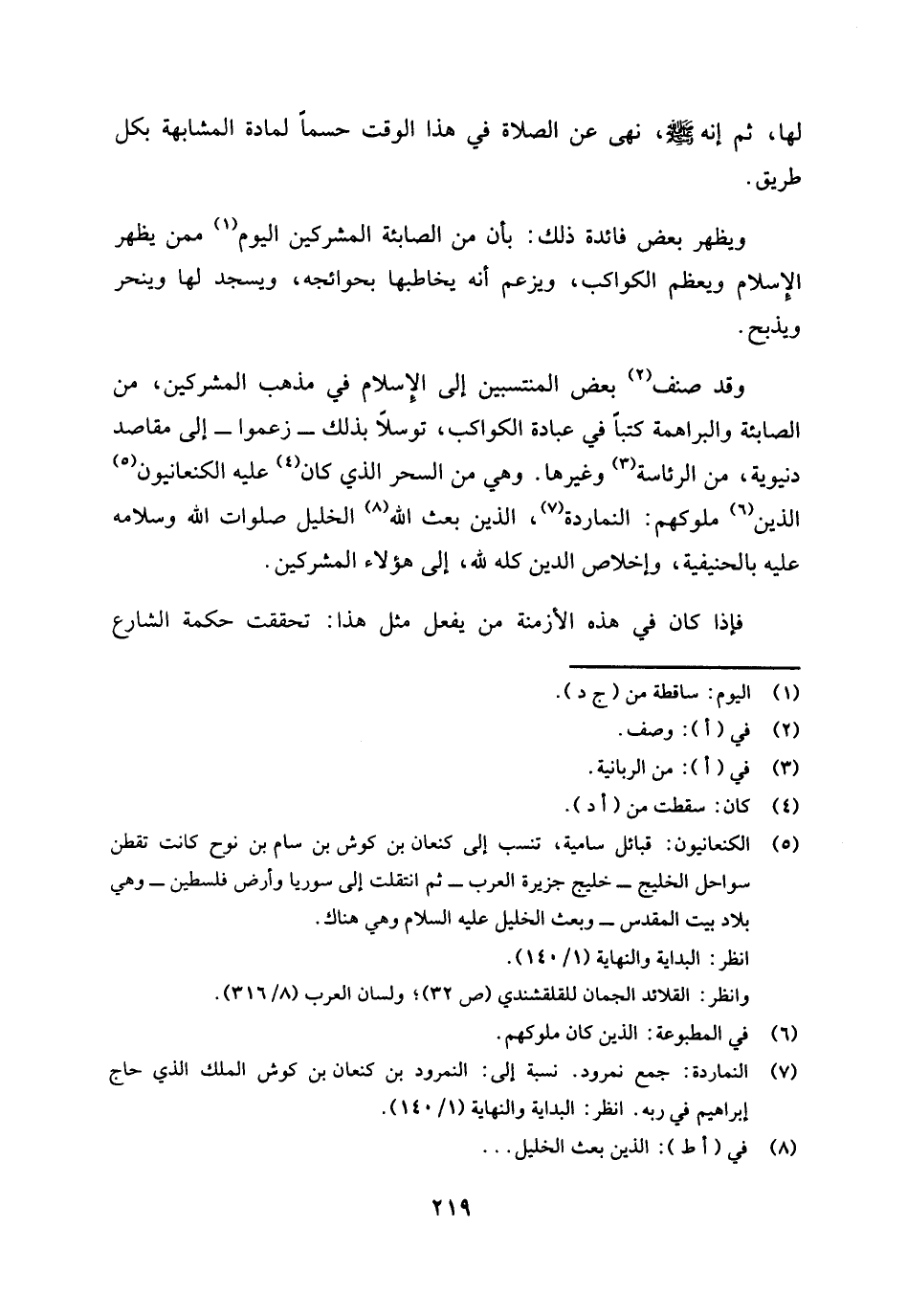 وقد صنف (¬2) بعض المنتسبين إلى الإسلام في مذهب المشركين من الصابئة والبراهمة كتبا في عبادة الكواكب توسلا بذلك زعموا إلى مقاصد دنيوية من الرئاسة (¬3) وغيرها وهي من السحر الذي كان (¬4) عليه الكنعانيون (¬5) الذين (¬6) ملوكهم النماردة (¬7) الذين بعث الله (¬8) الخليل صلوات الله وسلامه عليه بالحنيفية وإخلاص الدين كله لله إلى هؤلاء المشركين.