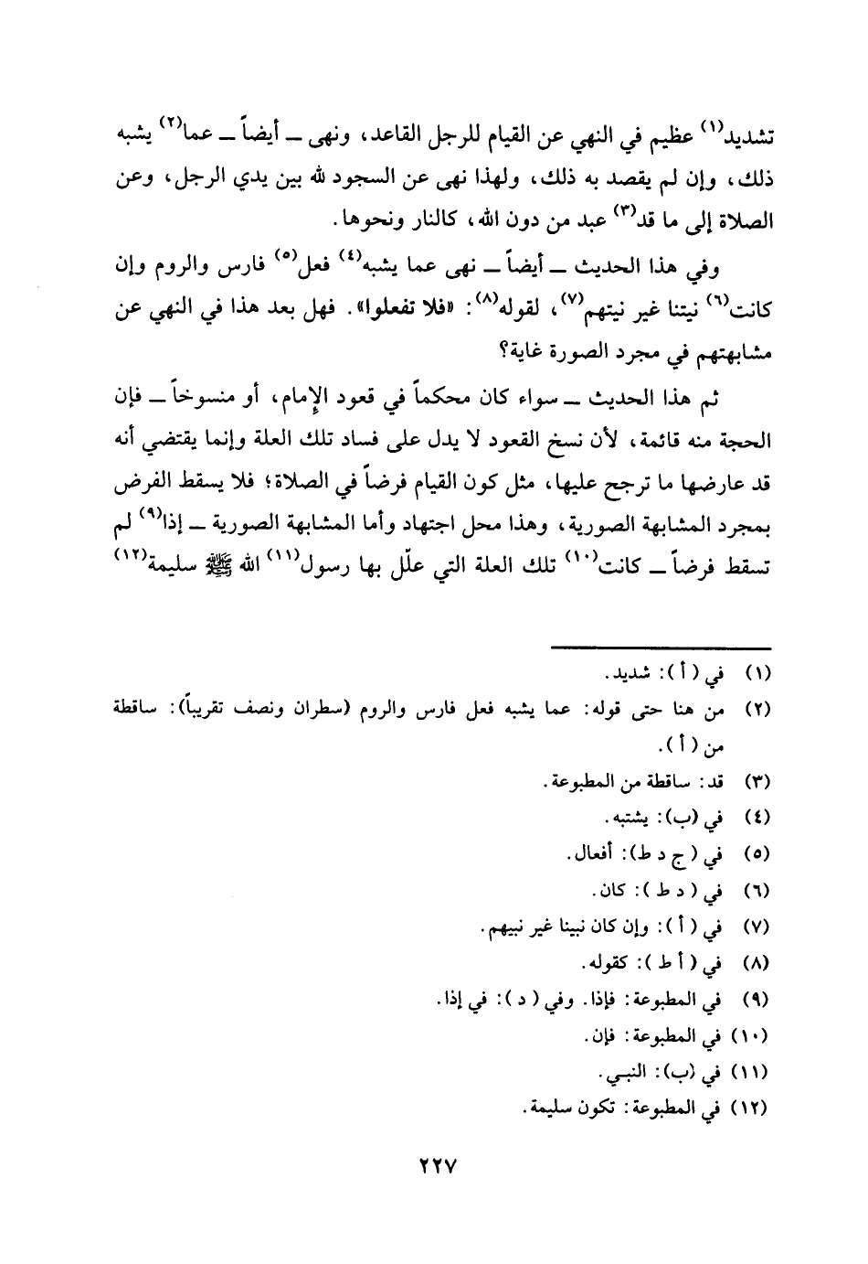 ثم هذا الحديث سواء كان محكما في قعود الإمام أو منسوخا فإن الحجة منه قائمة؛ لأن نسخ القعود لا يدل على فساد تلك العلة وإنما يقتضي أنه قد عارضها ما ترجح عليها مثل كون القيام فرضا في الصلاة فلا يسقط الفرض بمجرد المشابهة الصورية، وهذا محل اجتهاد، وأما المشابهة الصورية إذا (¬9) لم تسقط فرضا كانت (¬10) تلك العلة التي علل بها رسول (¬11) الله صلى الله عليه وسلم سليمة (¬12)