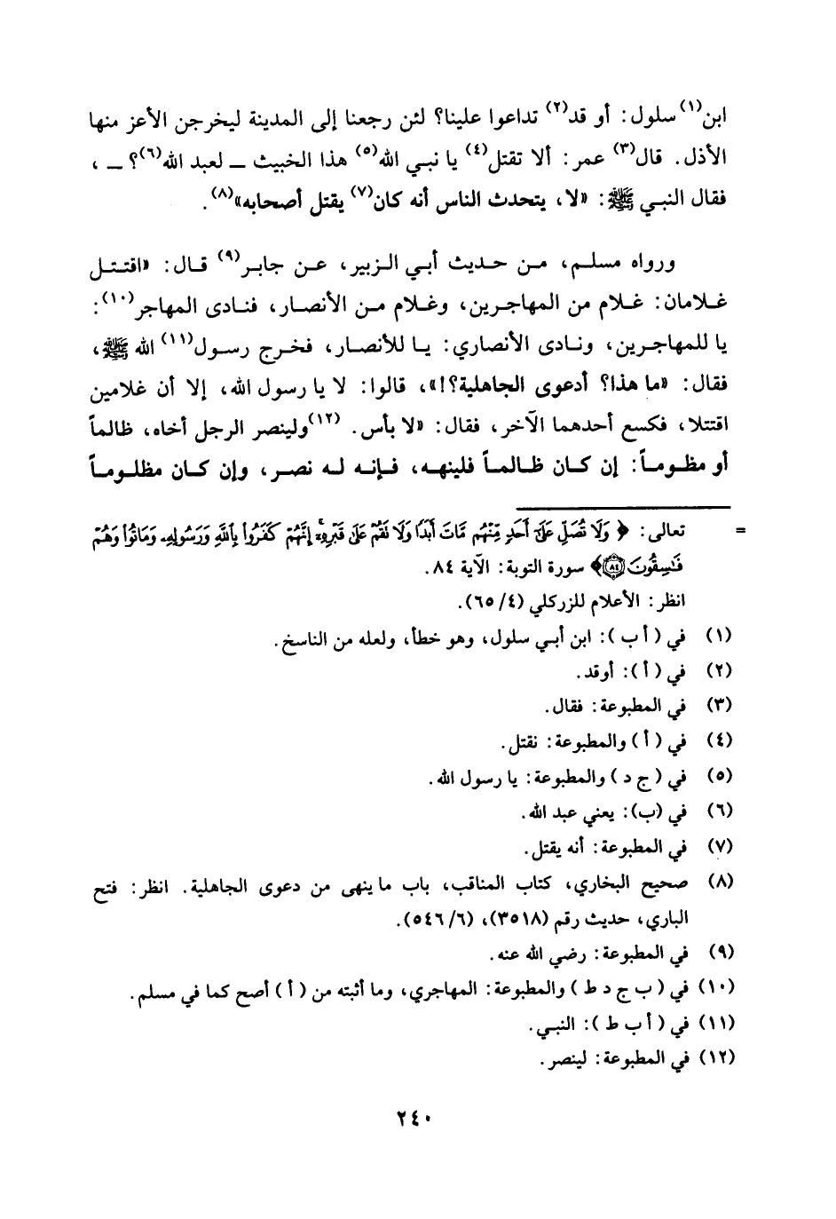 (¬8) صحيح البخاري، كتاب المناقب، باب ما ينهى من دعوى الجاهلية. انظر: فتح الباري، حديث رقم (3518) ، (6 / 546) .