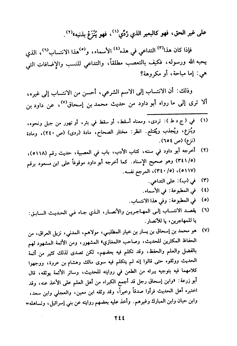 وذلك أن الانتساب إلى الاسم الشرعي أحسن من الانتساب إلى غيره، ألا ترى إلى ما رواه أبو داود من حديث محمد بن إسحاق (¬7) عن داود بن