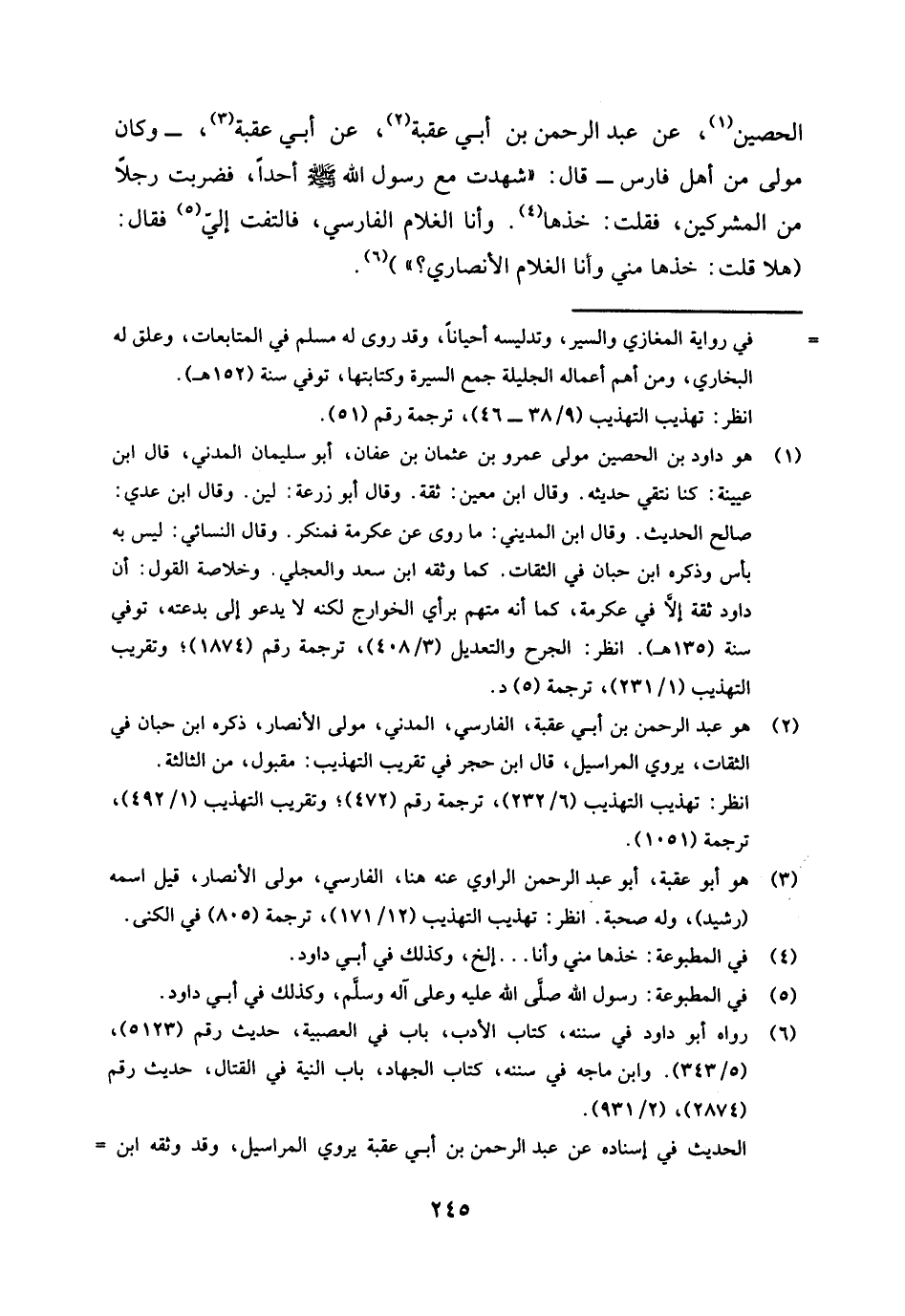 (¬2) هو: عبد الرحمن بن أبي عقبة، الفارسي، المدني، مولى الأنصار، ذكره ابن حبان في الثقات، يروي المراسيل، وقال ابن حجر في تقريب التهذيب: مقبول، من الثالثة.