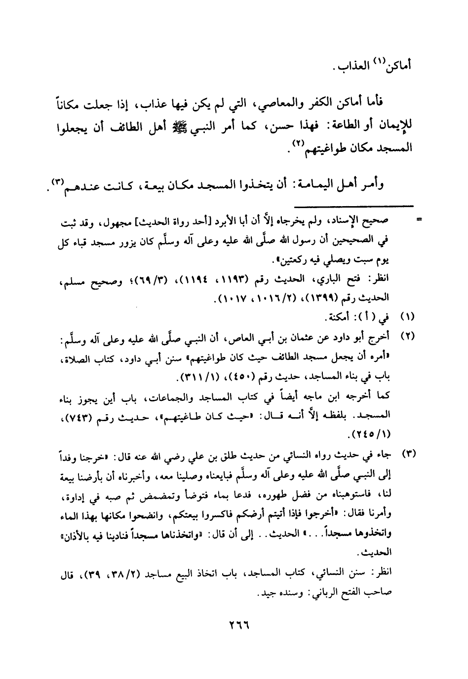 (¬2) أخرج أبو داود عن عثمان بن أبي العاص، أن النبي صلى الله عليه وعلى آله وسلم: "أمره أن يجعل مسجد الطائف حيث كان طواغيتهم" سنن أبي داود، كتاب الصلاة، باب في بناء المساجد، حديث رقم (450) ، (1 / 311) .
