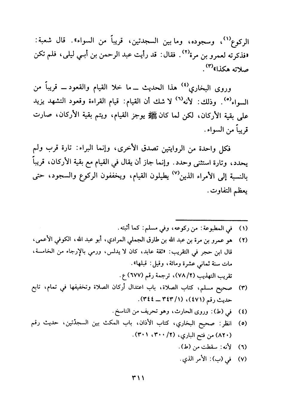 الركوع (¬1) وسجوده، وما بين السجدتين، قريبا من السواء ". قال شعبة: " فذكرته لعمرو بن مرة (¬2) . فقال: قد رأيت عبد الرحمن بن أبي ليلى، فلم تكن صلاته هكذا (¬3) .