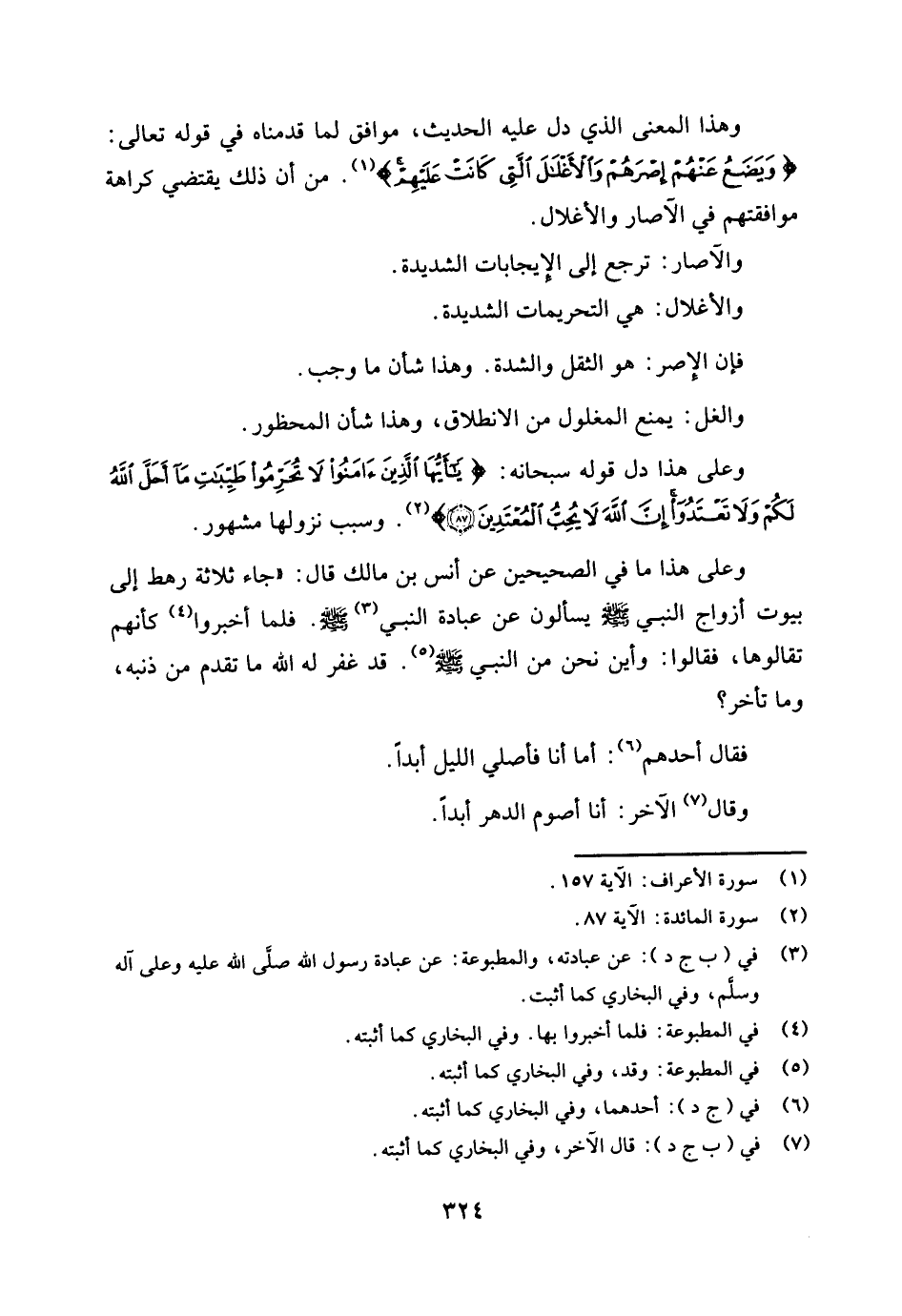 وعلى هذا دل قوله سبحانه {يَا أَيُّهَا الَّذِينَ آمَنُوا لَا تُحَرِّمُوا طَيِّبَاتِ مَا أَحَلَّ اللَّهُ لَكُمْ وَلَا تَعْتَدُوا إِنَّ اللَّهَ لَا يُحِبُّ الْمُعْتَدِينَ} [المائدة: 87] (¬2) . وسبب نزولها مشهور.