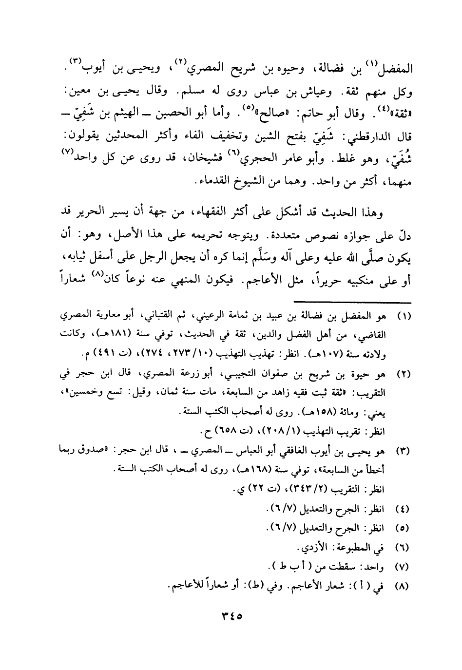 المفضل (¬1) بن فضالة، وحيوة بن شريح المصري (¬2) ويحيى بن أيوب (¬3) . وكل منهم ثقة، وعياش بن عباس روى له مسلم، وقال يحيى بن معين: " ثقة " (¬4) . وقال أبو حاتم: " صالح " (¬5) . وأما أبو الحصين - الهيثم بن شَفِيّ - قال الدارقطني: شَفِيّ بفتح الشين وتخفيف الفاء، وأكثر المحدثين يقولون: شُفَيّ، وهو غلط. وأبو عامر الحجري (¬6) فشيخان، قد روى عن كل واحد (¬7) منهما أكثر من واحد. وهما من الشيوخ القدماء.