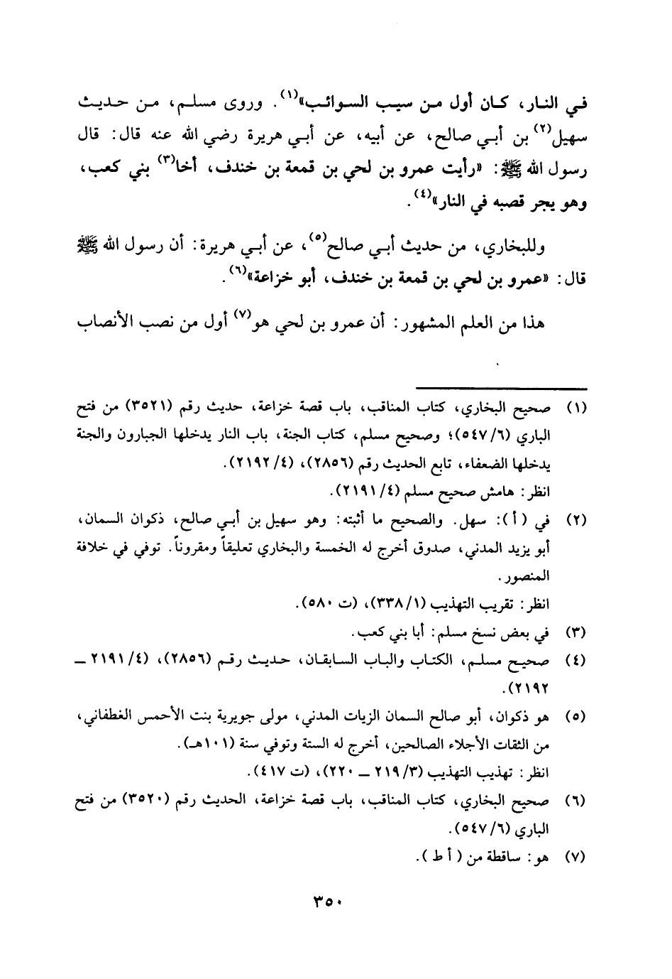 وروى مسلم، من حديث سهيل (¬2) بن أبي صالح، عن أبيه، عن أبي هريرة رضي الله عنه قال: قال رسول الله صلى الله عليه وسلم: «رأيت عمرو بن لحي بن قمعة بن خندف، أخا (¬3) بني كعب، وهو يجر قصبه في النار» (¬4) .