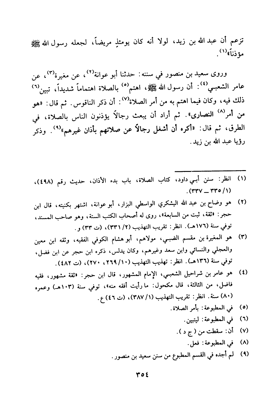 وروى سعيد بن منصور في سننه: حدثنا أبو عوانة (¬2) عن مغيرة (¬3) عن عامر الشعبي (¬4) أن رسول الله صلى الله عليه وسلم، اهتم (¬5) بالصلاة اهتماما شديدا، تبين (¬6) ذلك فيه، وكان فيما اهتم به من أمر الصلاة (¬7) أن ذكر الناقوس، ثم قال: " هو من أمر (¬8) النصارى ". ثم أراد أن يبعث رجالا يؤذنون الناس بالصلاة، في الطرق، ثم قال: " أكره أن أشغل رجالا عن صلاتهم بأذان غيرهم " (¬9) وذكر رؤيا عبد الله بن زيد.