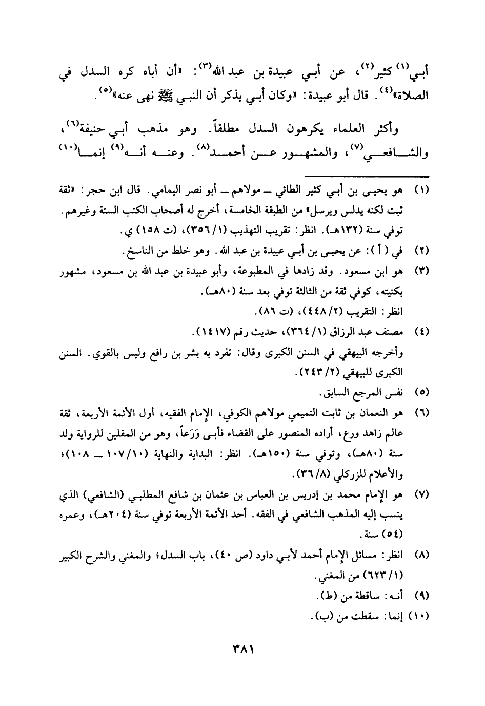 (¬8) انظر: مسائل الإمام أحمد لأبي داود (ص 40) ، باب السدل، والمغني والشرح الكبير (1 / 623) من المغني.