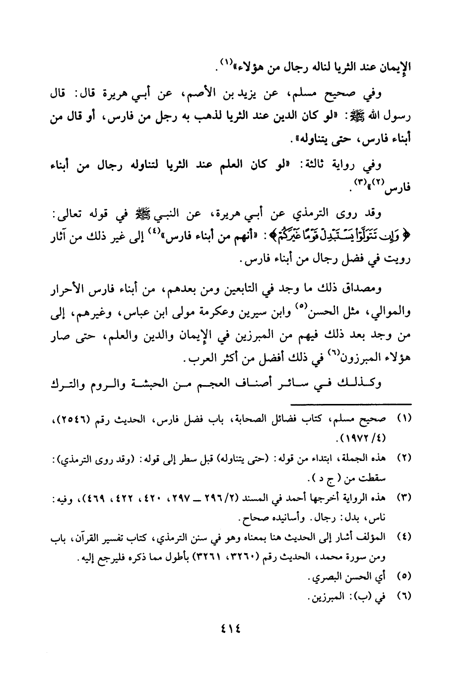 (¬1) صحيح البخاري، كتاب التفسير (سورة الجمعة) - باب قوله: (وآخرين منهم لما يلحقوا بهم) ، الحديث رقم (4897) ، (4898) من فتح الباري (8 / 641) . وصحيح مسلم، كتاب فضائل الصحابة، باب فضل فارس، تابع الحديث رقم (2546) ، (4 / 1972، 1973) .