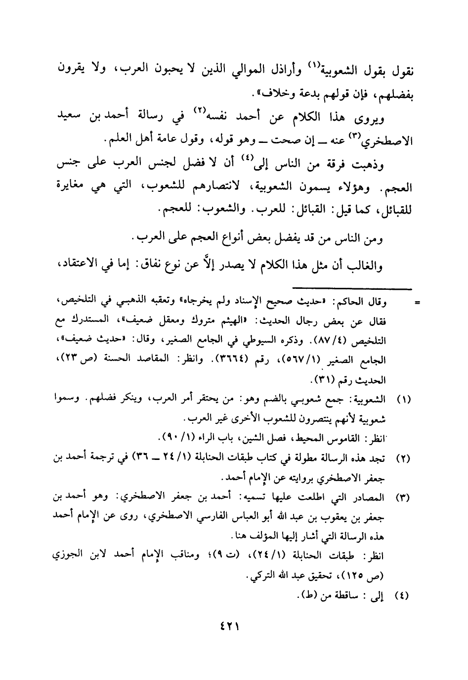 (¬1) الشعوبية: جمع شعوبي- بالضم - وهو: من يحتقر أمر العرب، وينكر فضلهم، وسموا: شعوبية؛ لأنهم ينتصرون للشعوب الأخرى غير العرب.