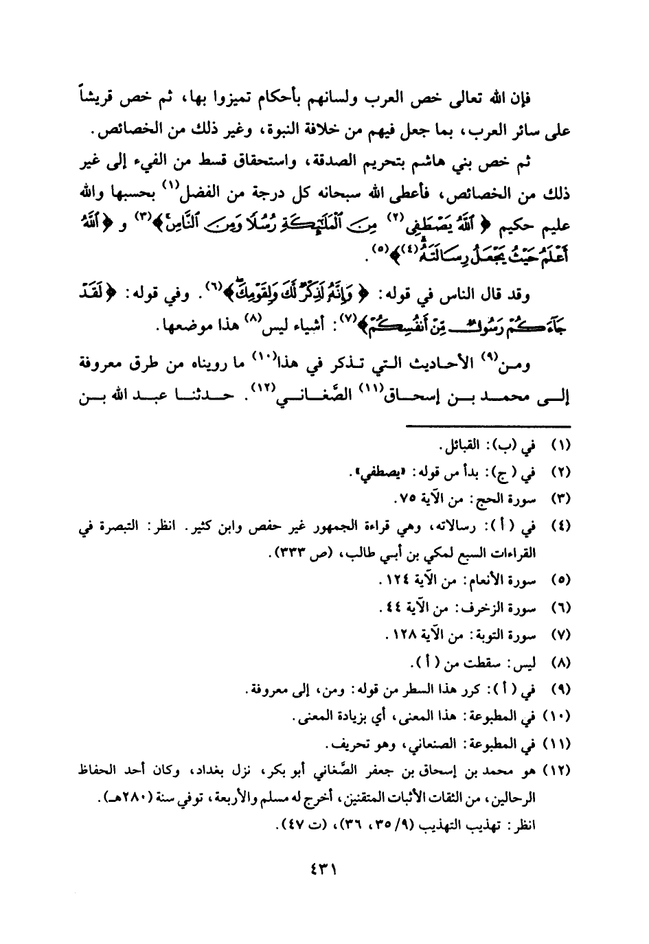(¬12) هو: محمد بن إسحاق بن جعفر الصغاني، أبو بكر، نزل بغداد، وكان أحد الحفاظ الرحالين، من الثقات الأثبات المتقنين، أخرج له مسلم والأربعة، توفي سنة (280 هـ) .
