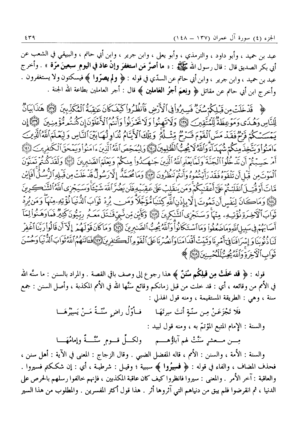 [سورة آل عمران (3) : الآيات 137 الى 148]