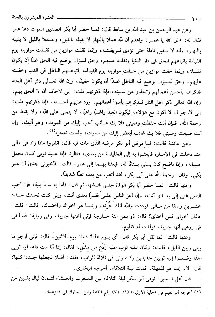 1 أخرجه أبو نعيم في حلية الأولياء 1/71. رقم 83. وابن المباترك في الزهد.