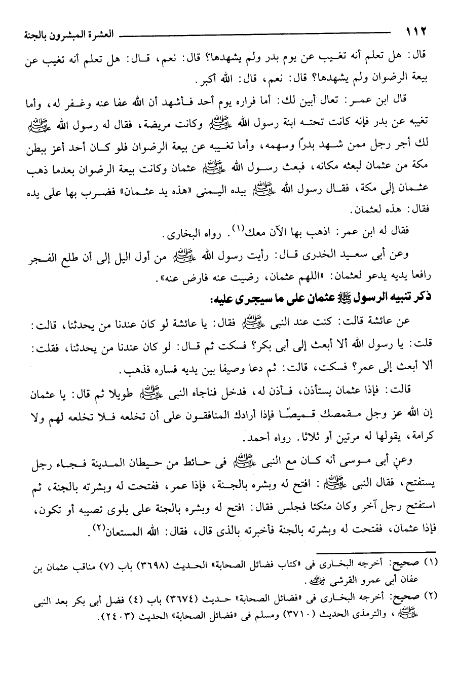 1 صحيح: أخرجه البخاري في كتاب فضائل الصحابة الحديث 3698. باب 7. مناقب عثمان بن عفان أبي عمرو القرشي رضي الله عنه.