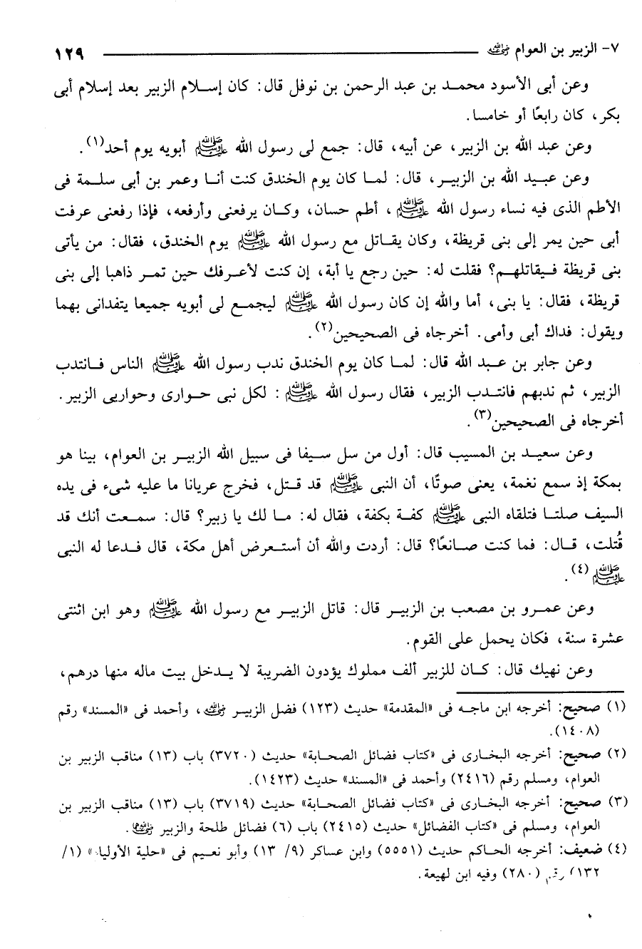 1 صحيح: أخرجه ابن ماجة في المقدمة حديث 123. فضل الزبير رضي الله عنه وأحمد في المسند رقم 1408.