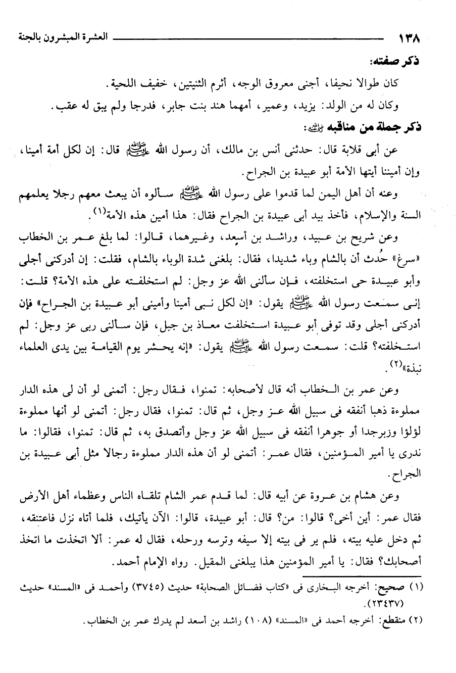 1 صحيح: أخرجه البخاري في كتاب فضائل الصحابة حديث 3745. وأحمد في المسند حديث 23437.