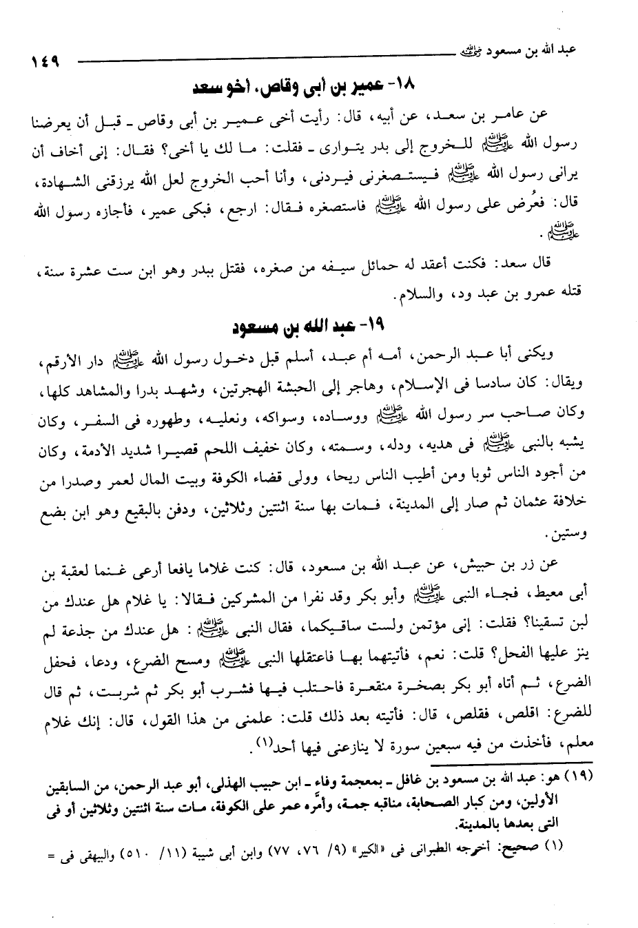 19- هو: عبد الله بن مسعود بن غافل بمعجمة وفاء ابن حبيب الهذلي أبو عبد الرحمن من السابقين الأولين ومن كبار الصحابة مناقبه جمة وأمره عمر على الكوفة مات سنة اثنتين وثلاثين أو في التي بعدها بالمدينة.