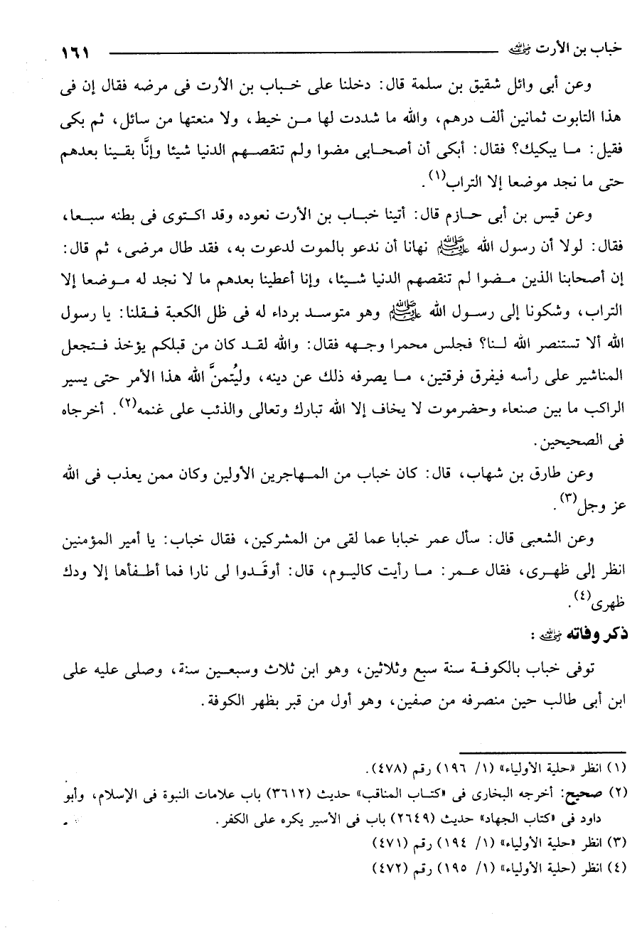 وعن طارق بن شهاب. قال: كان خبّاب من المهاجرين الأولين وكان ممن يعذب في الله عز وجل3.