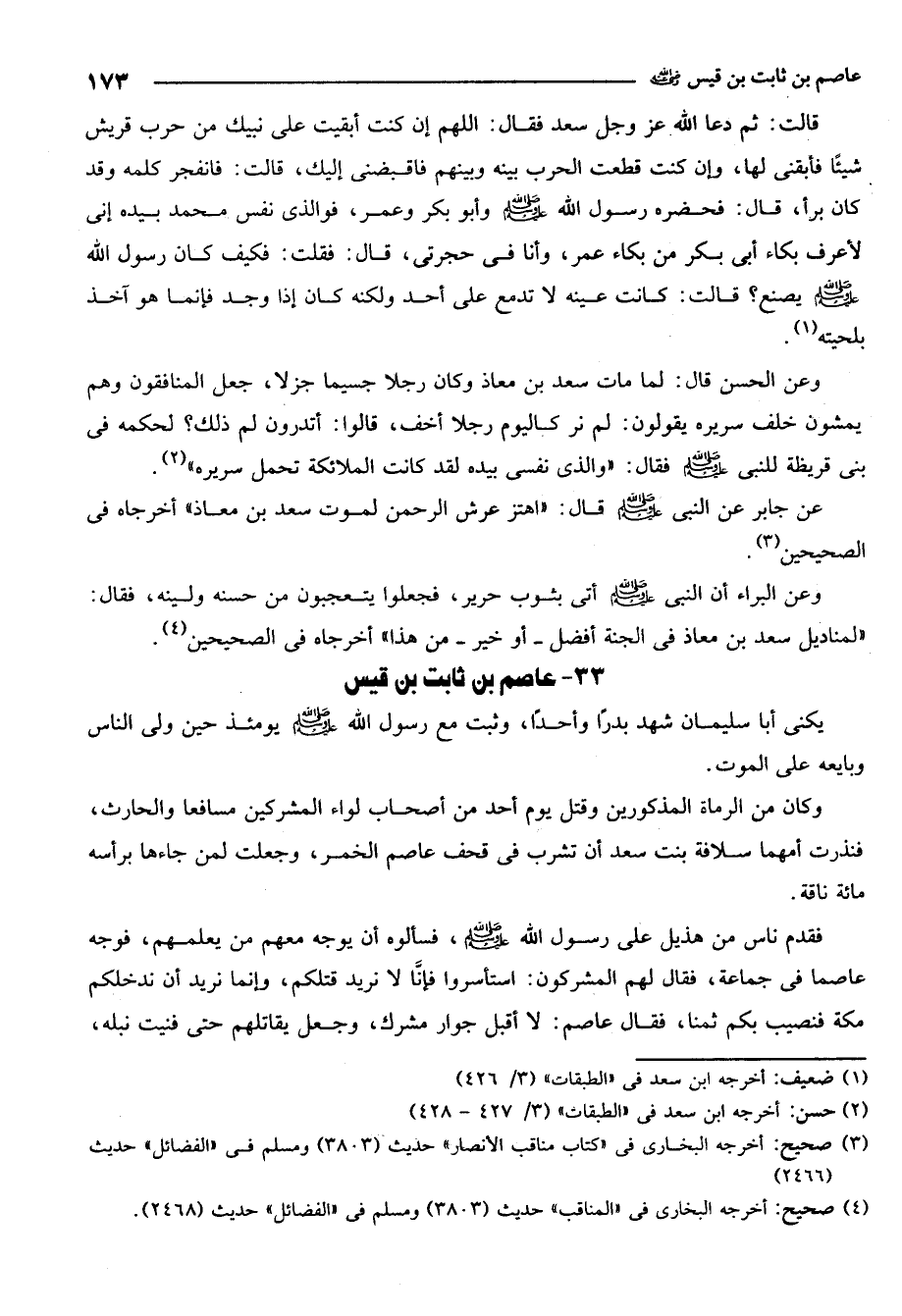 1 ضعيف: أخرجه ابن سعد في الطبقات 3/426.