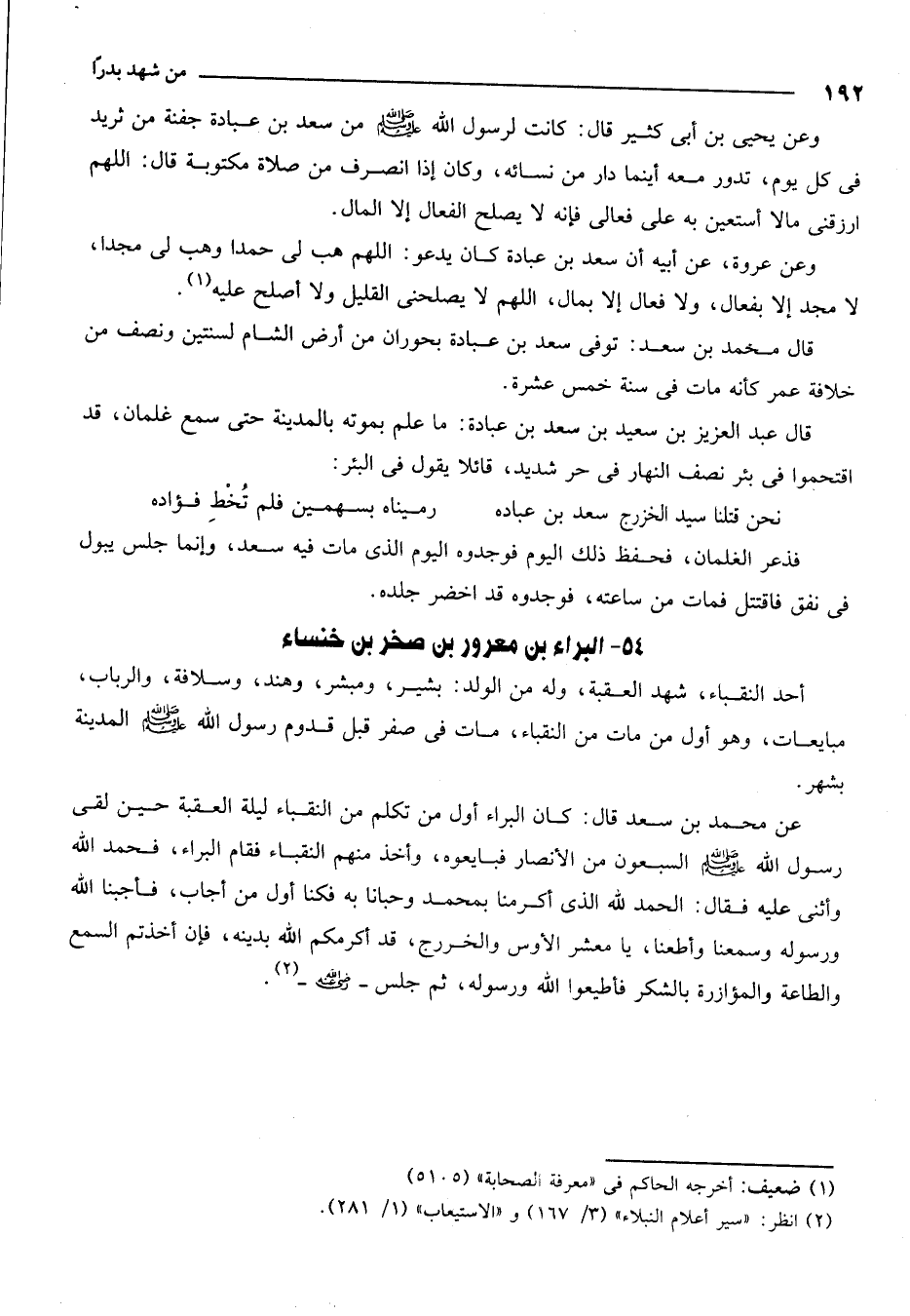 وعن عروة عن أبيه ان سعد بن عبادة كان يدعو اللهم هب لي حمدا مجلدا لا مجد إلا بفعال ولا فعال إلا بمال اللهم لا يصلحني القليل ولا اصلح عليه1.