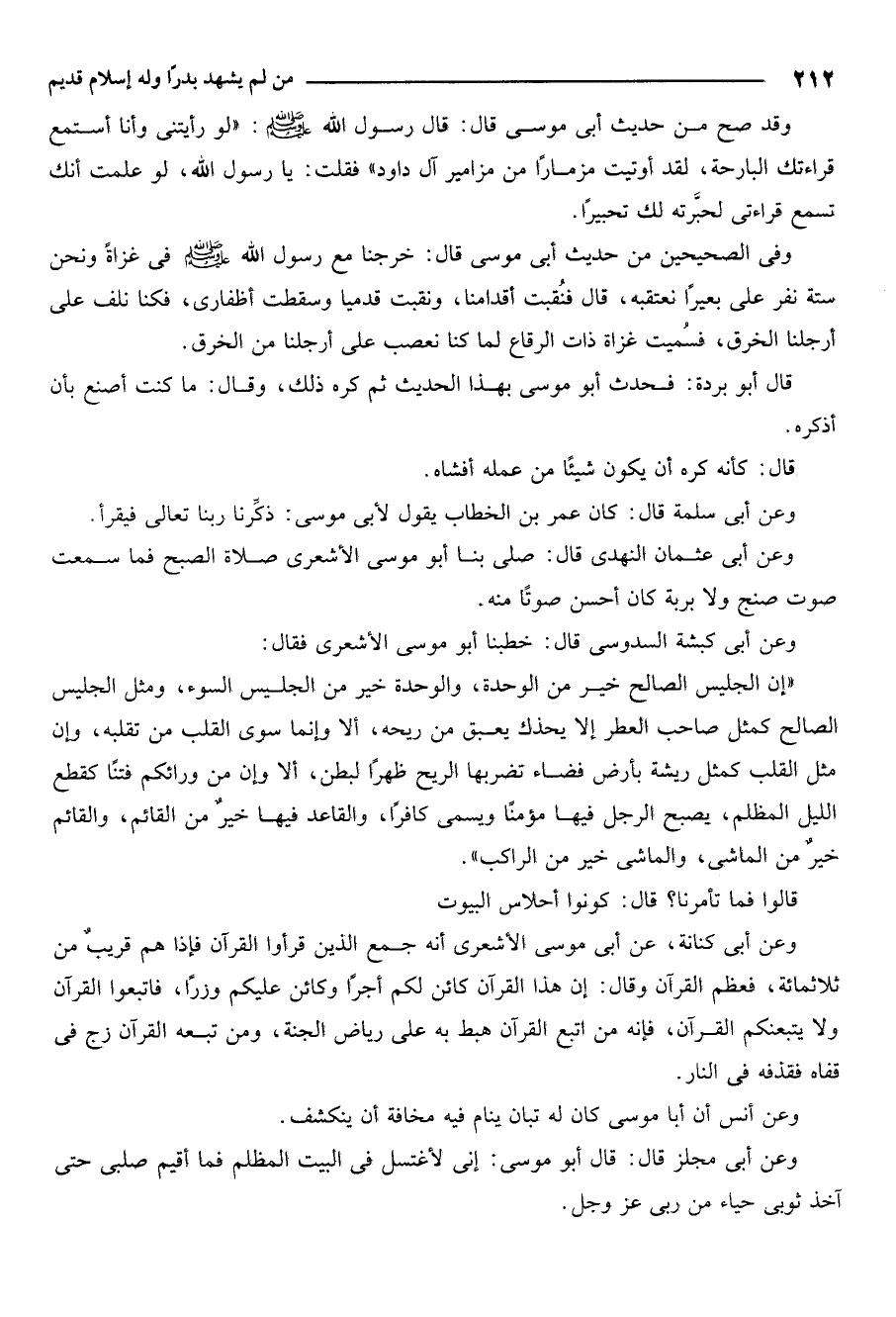 وعن أبي عثمان النهدي قال صلى بنا أبو موسى الاشعري صلاة الصبح فما سمعت صوت صنج ولا بربط كان احسن صوتا منه.