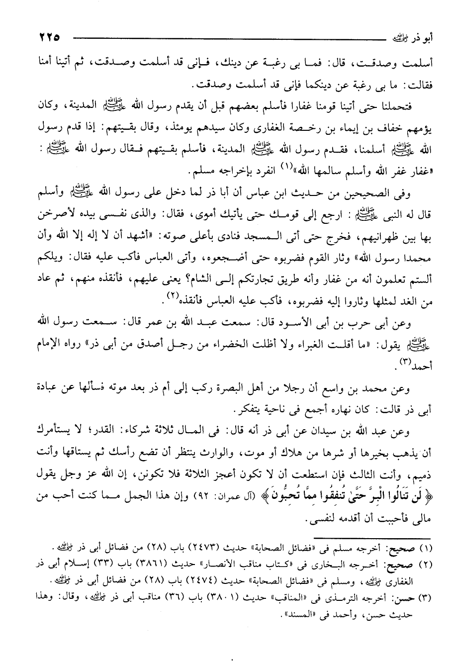 2 صحيح: أخرجه البخاري في كتاب مناقب الأنصار حديث 3861. باب 33. إسلام أبي ذر الغفاري رضي الله عنه. ومسلم في فضائل الصحابة حديث 2474. باب 28. من فضائل أبي ذر رضي الله عنه.