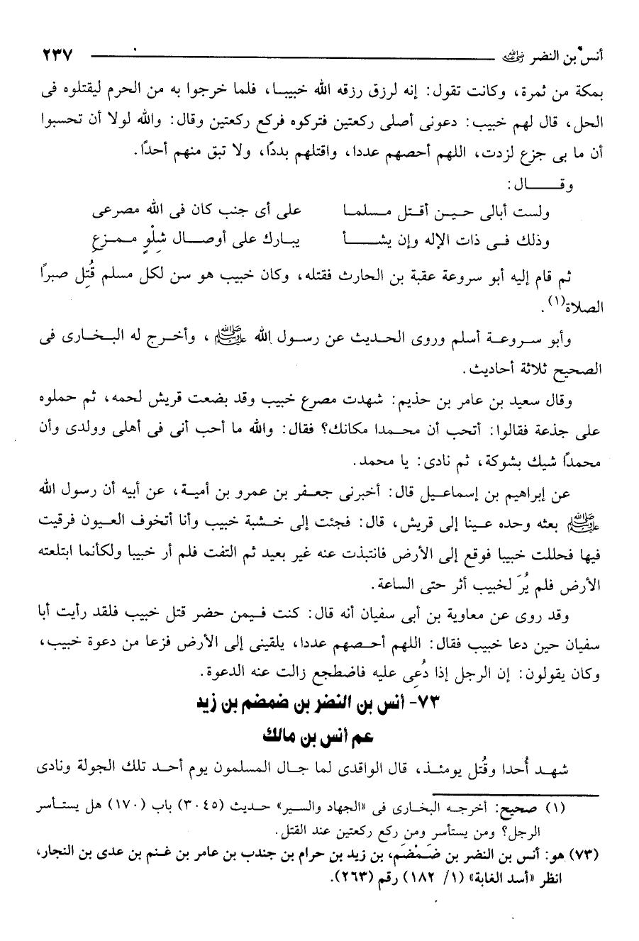 73- أنس بن النضر بن ضمضم بن زيد عم أنس بن مالك: