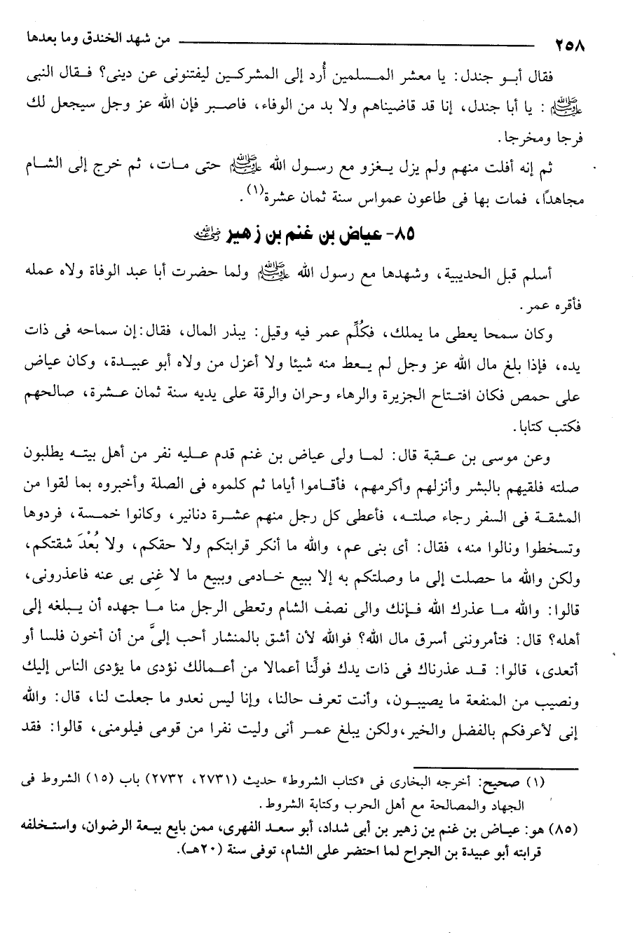 85- هو: عياض بن غنم بن زهير بن أبي شداد أبو سعيد الفهري ممن بايع بيعة الرضوان واستخلفه قرابته أبو عبيدة بن الجراح لما احتضر على الشام توفي سنة 20هـ.