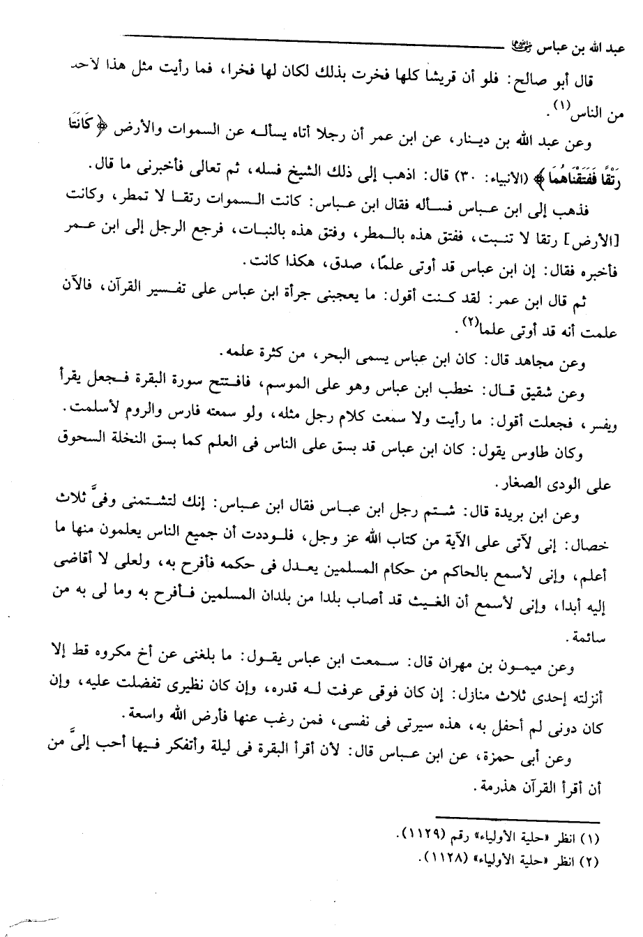 وعن شقيق قال: خطب ابن عباس وهو على الموسم فافتح سورة البقرة فجعل يقرأ ويفسّر، فجعلت أقول: ما رأيت ولا سمعت كلام رجلٍ مثله، ولو سمعته فارسُ والروم لأسلمت.