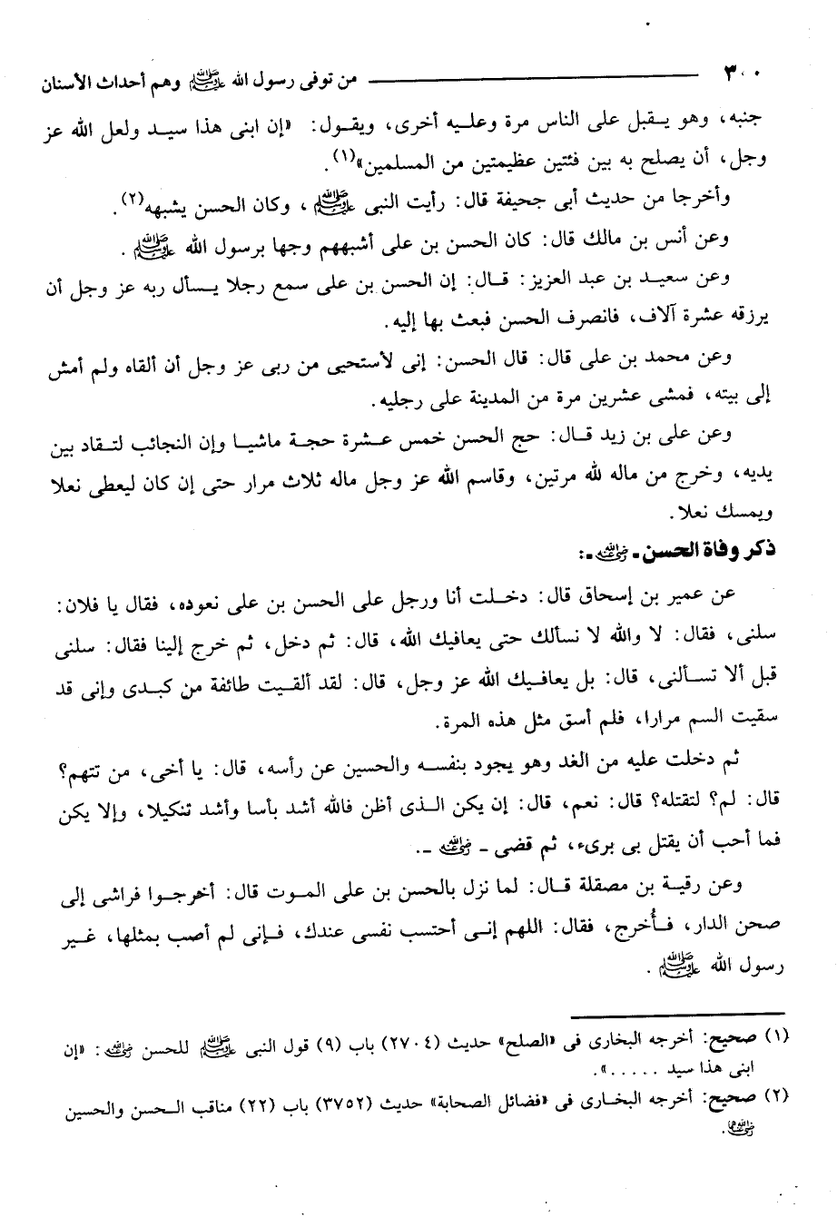 1 صحيح: أخرجه البخاري في الصلح حديث 2704. باب 9. قول النبي صلى الله عليه وسلم للحسن رضي الله عنه: "إن ابني هذا سيد ... "