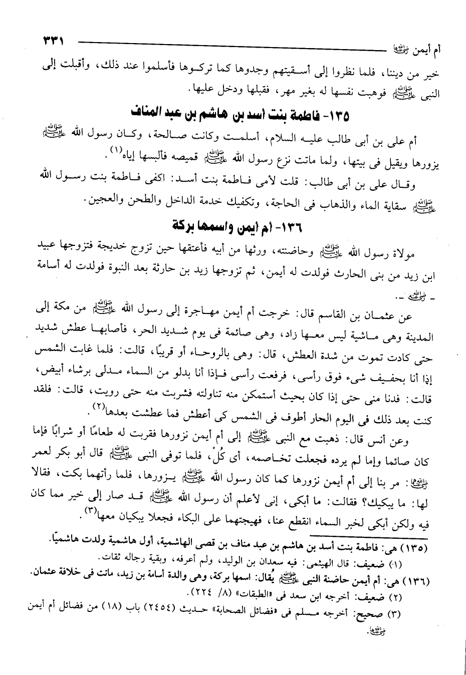 135- هي: فاطمة بنت أسد بن هاشم بن عبد مناف بن قصي الهاشمية أول هاشمية ولدت هاشميا.