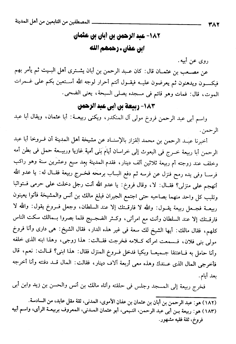 182- هو: عبد الرحمن بن أبان بن عثمان بن عفان الأموي المدني ثقة مقل عابد من السادسة.