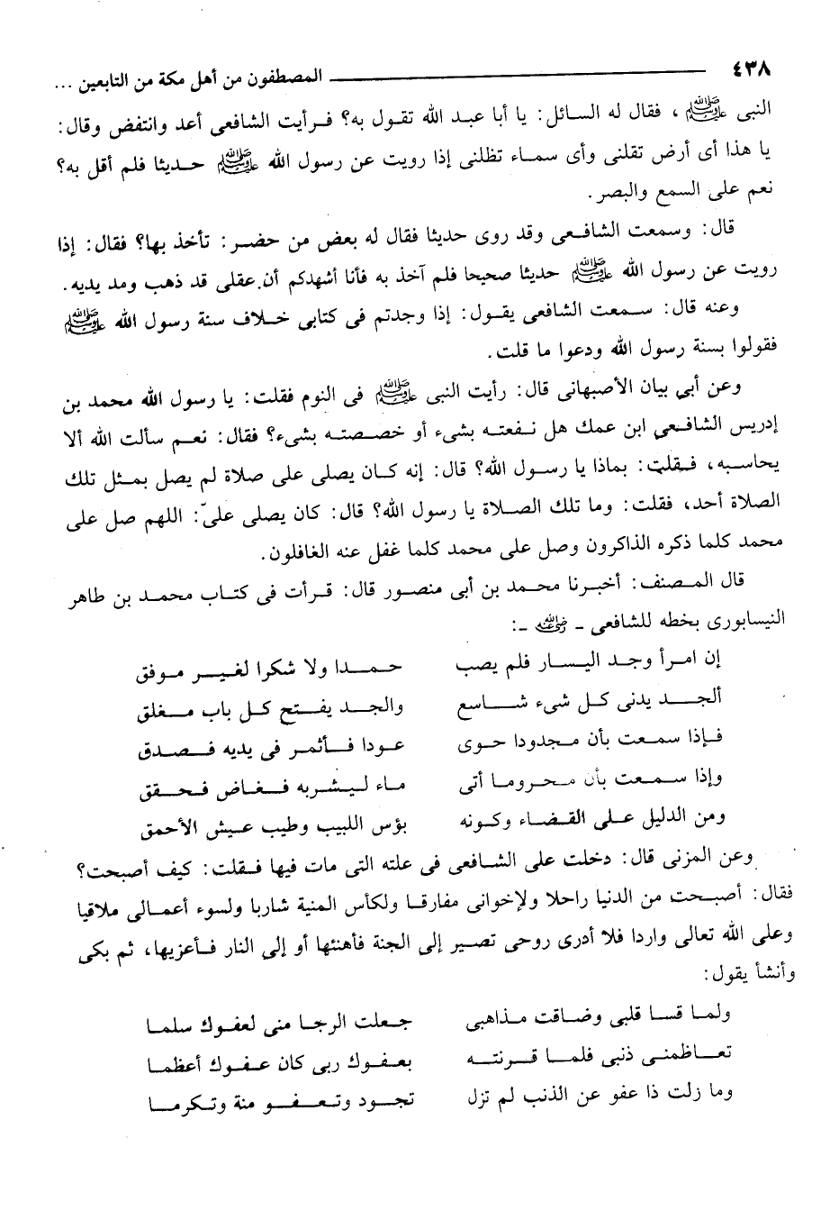قال المصنف اخبرنا محمد بن ابي منصور قال قرات في كتاب محمد بن طاهر النيسابوري بخطه للشافعي رضي الله عنه:
