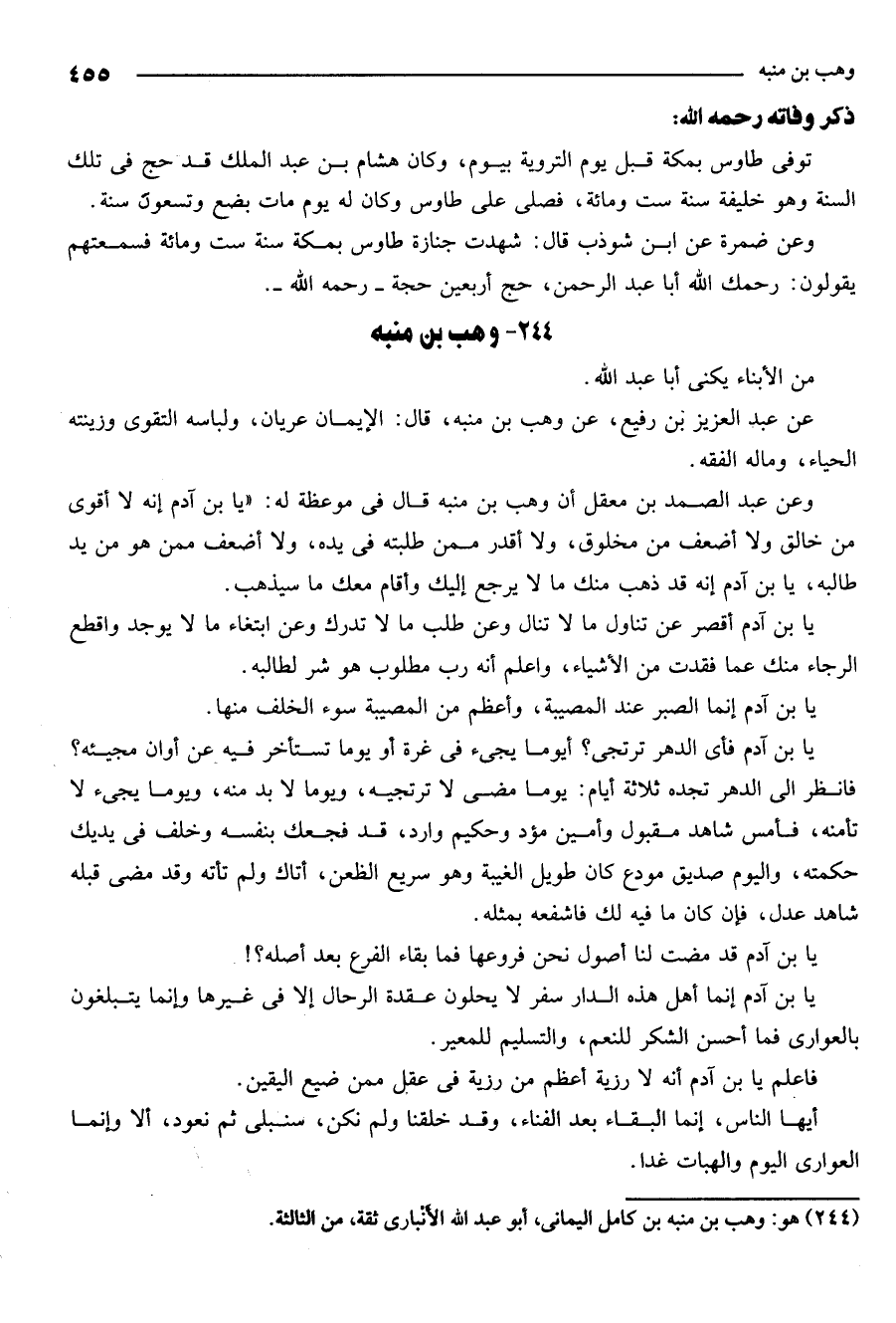 244- هو: وهب بن منبه بن كامل اليماني أبو عبد الله الأنباري ثقة من الثالثة.