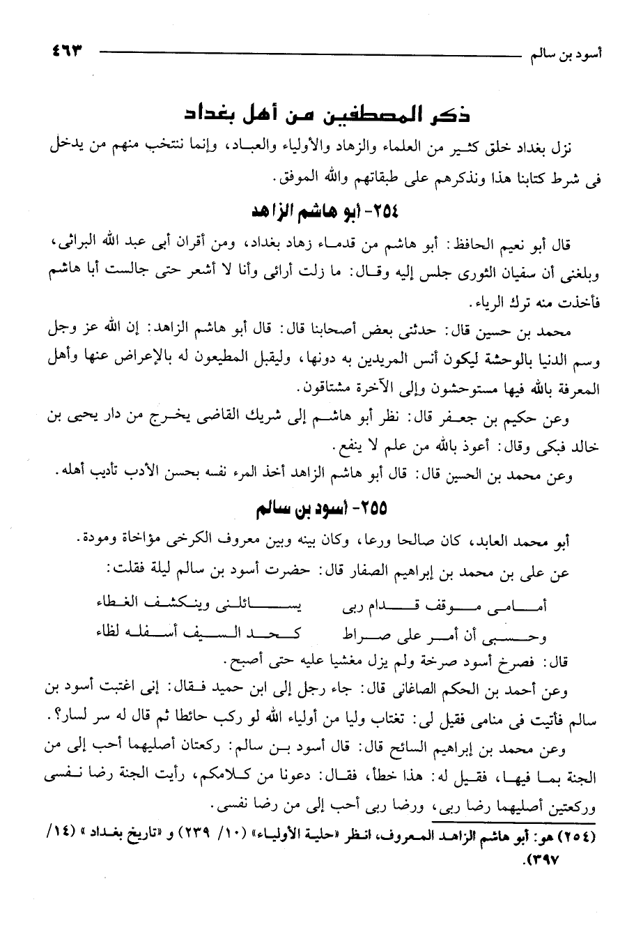 254- هو: أبو هاشم الزاهد المعروف أنظر حلية الأولياء 10/239. وتاريخ بغداد 14/397.