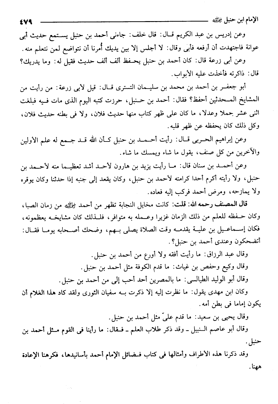 وقد ذكرنا هذه الاطراف وامثالها في كتاب فضائل الامام احمد باسانيدها فكرهنا الاعادة ههنا.