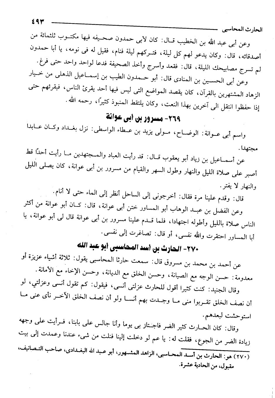 270- هو: الحارث بن أسد المحاسبي الزاهد المشهور أبو عبد الله الغدادي صاحب التصانيف مقبول من الحادية عشرة.
