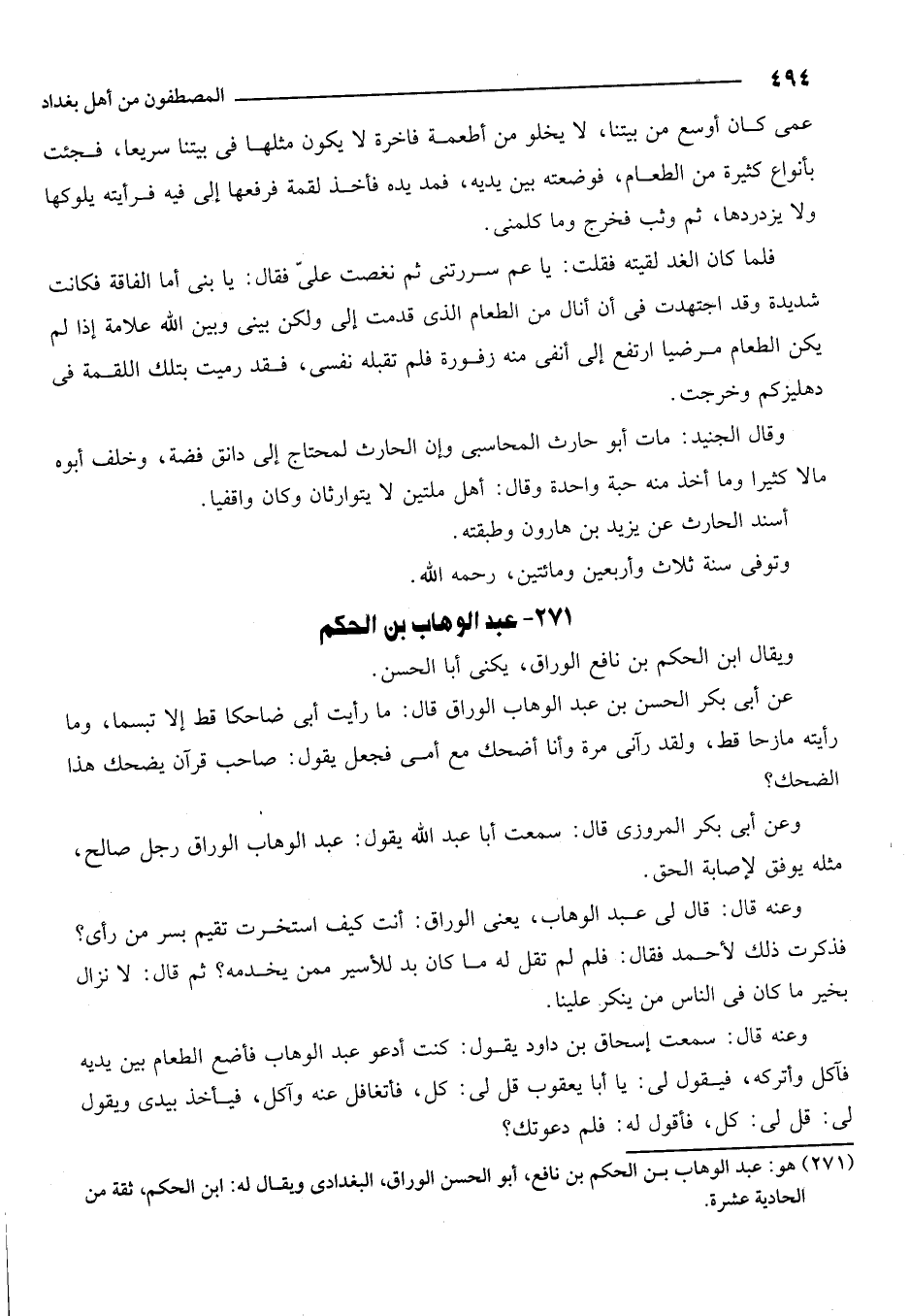 271- هو: عبد الوهاب بن الحكم بن نافع أبو الحسن الوراق البغدادي ويقال له: ابن الحكم ثقة من الحادية عشرة.