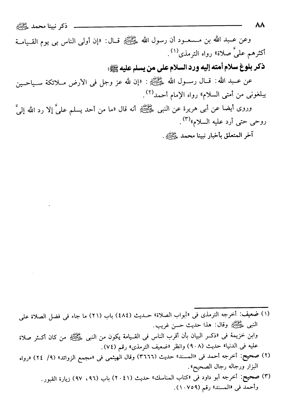 وعن عبد الله بن مسعود أن رسول الله صلى الله عليه وسلم قال: " إن أولى الناس بي يوم القيامة أكثرهم علي صلاة" رواه الترمذي1.
