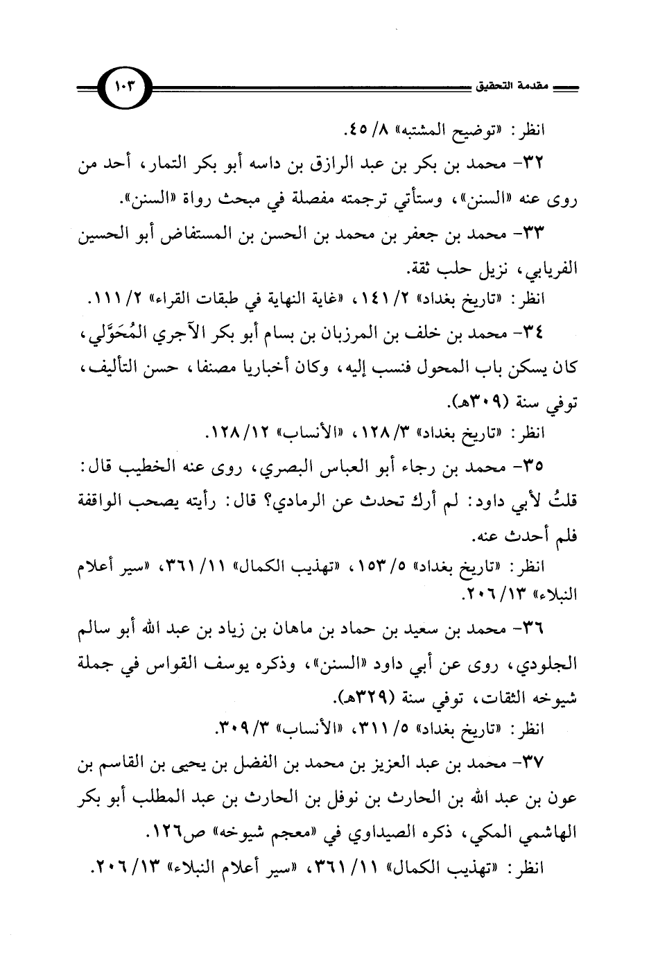 36 - محمد بن سعيد بن حماد بن ماهان بن زياد بن عبد الله أبو سالم الجلودي، روى عن أبي داود "السنن"، وذكره يوسف القواس في جملة شيوخه الثقات، توفي سنة (329 هـ).