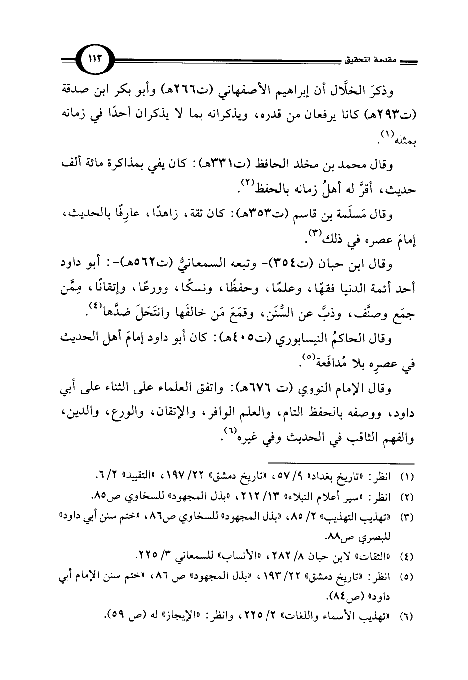 (¬5) انظر: "تاريخ دمشق" 22/ 193، "بذل المجهود" ص 86، "ختم سنن الإمام أبي داود" (ص 84).