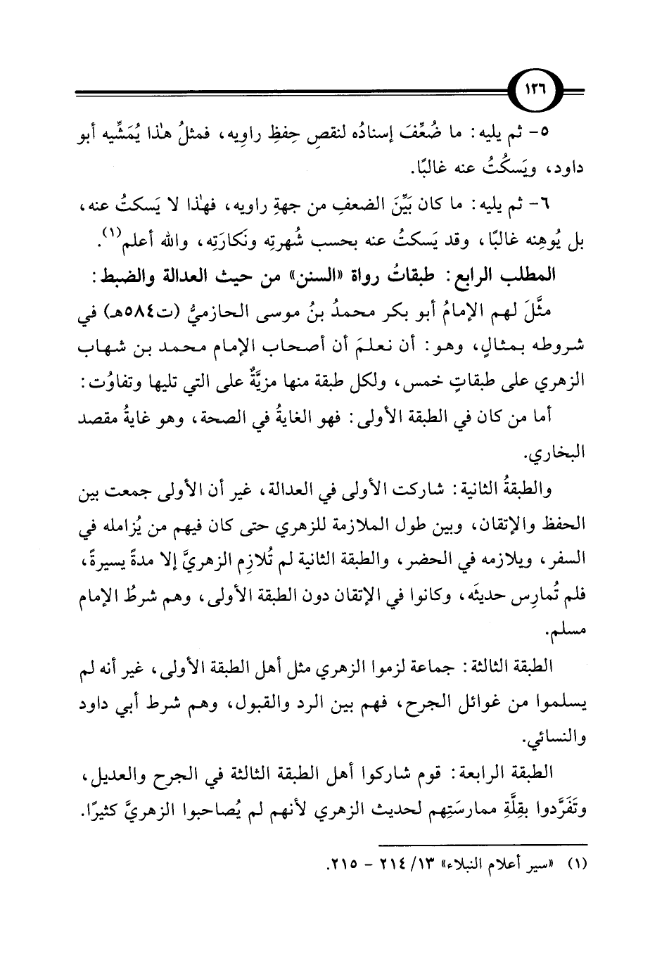 المطلب الرابع: طبقاتُ رواة "السنن" من حيث العدالة والضبط:
