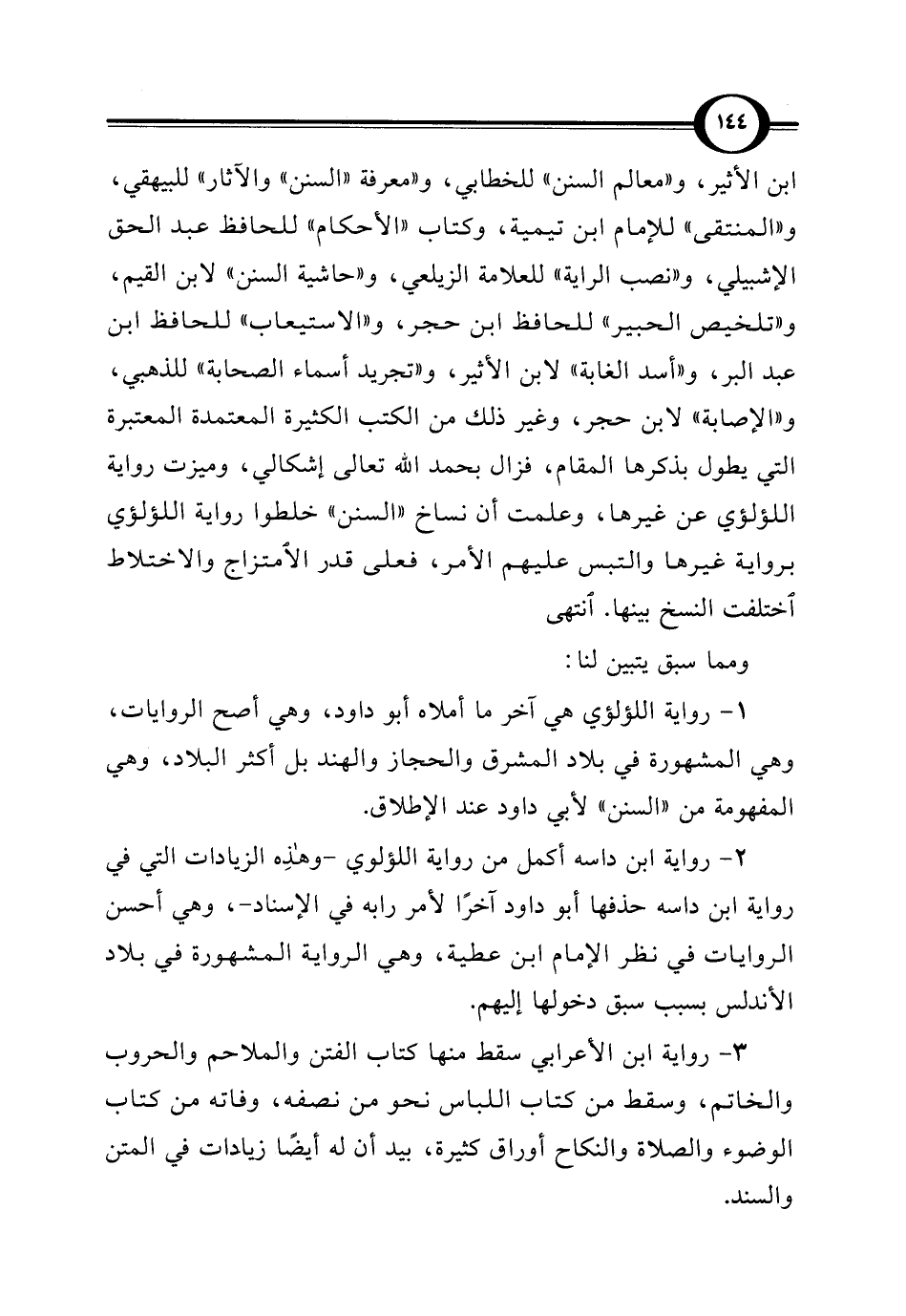 1 - رواية اللؤلؤي هي آخر ما أملاه أبو داود، وهي أصح الروايات، وهي المشهورة في بلاد المشرق والحجاز والهند بل أكثر البلاد، وهي المفهومة من "السنن" لأبي داود عند الإطلاق.