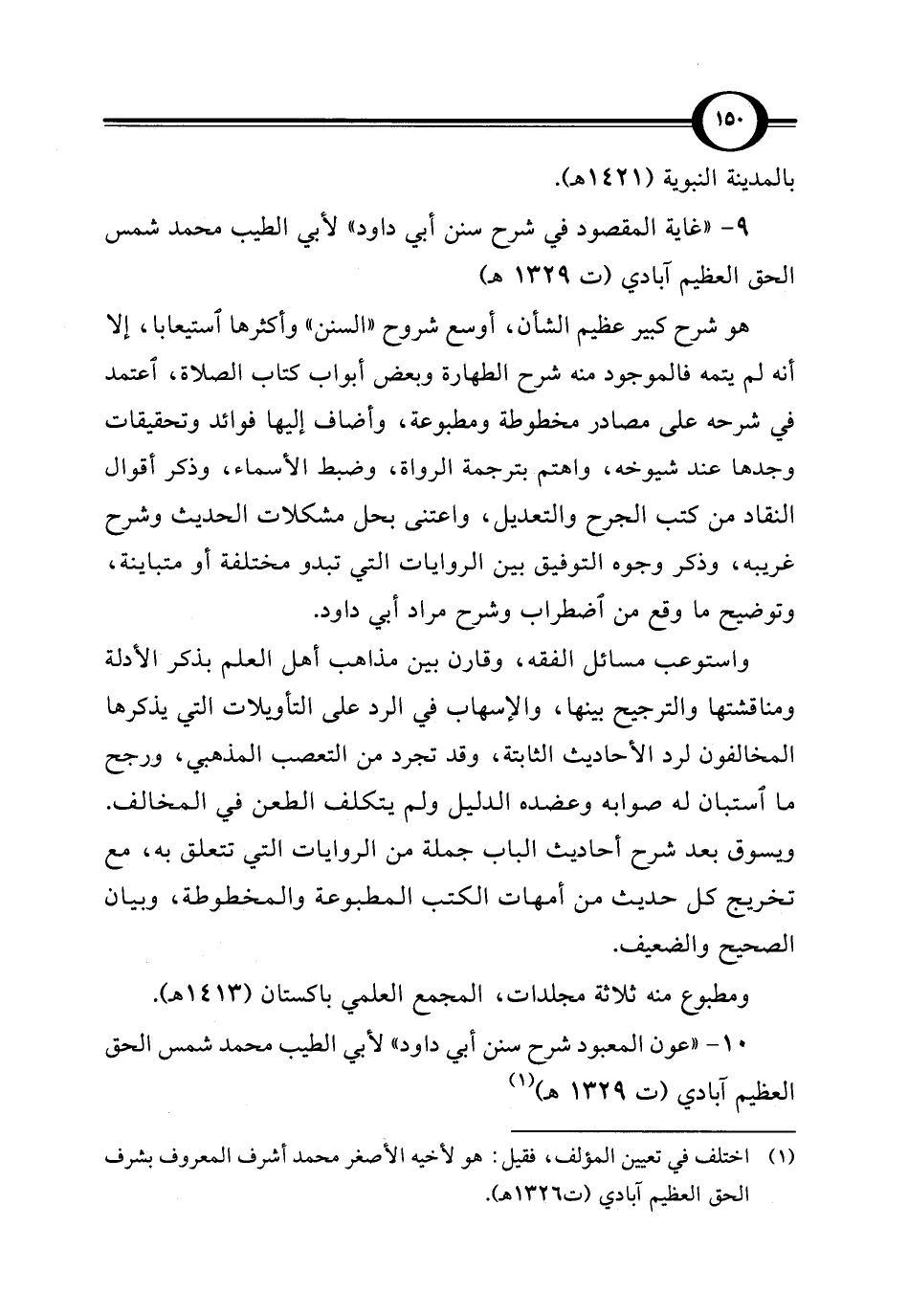 10 - "عون المعبود شرح سنن أبي داود" لأبي الطيب محمد شمس الحق العظيم آبادي (ت 1329 هـ) (¬1).