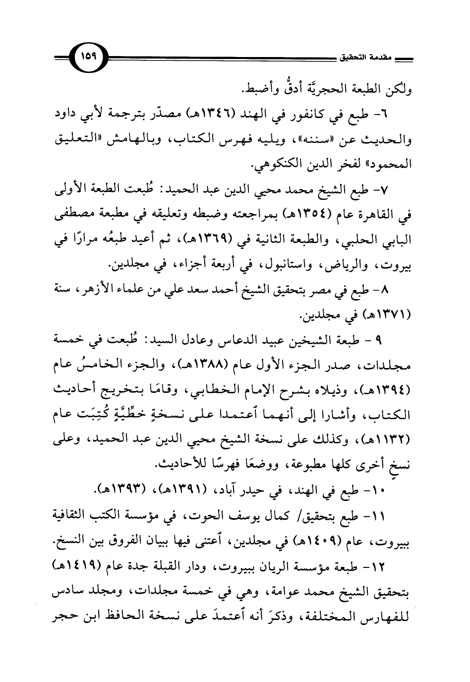 12 - طبعة مؤسسة الريان ببيروت، ودار القبلة جدة عام (1419 هـ) بتحقيق الشيخ محمد عوامة، وهي في خمسة مجلدات، ومجلد سادس للفهارس المختلفة، وذكرَ أنه اعتمدَ على نسخة الحافظ ابن حجر