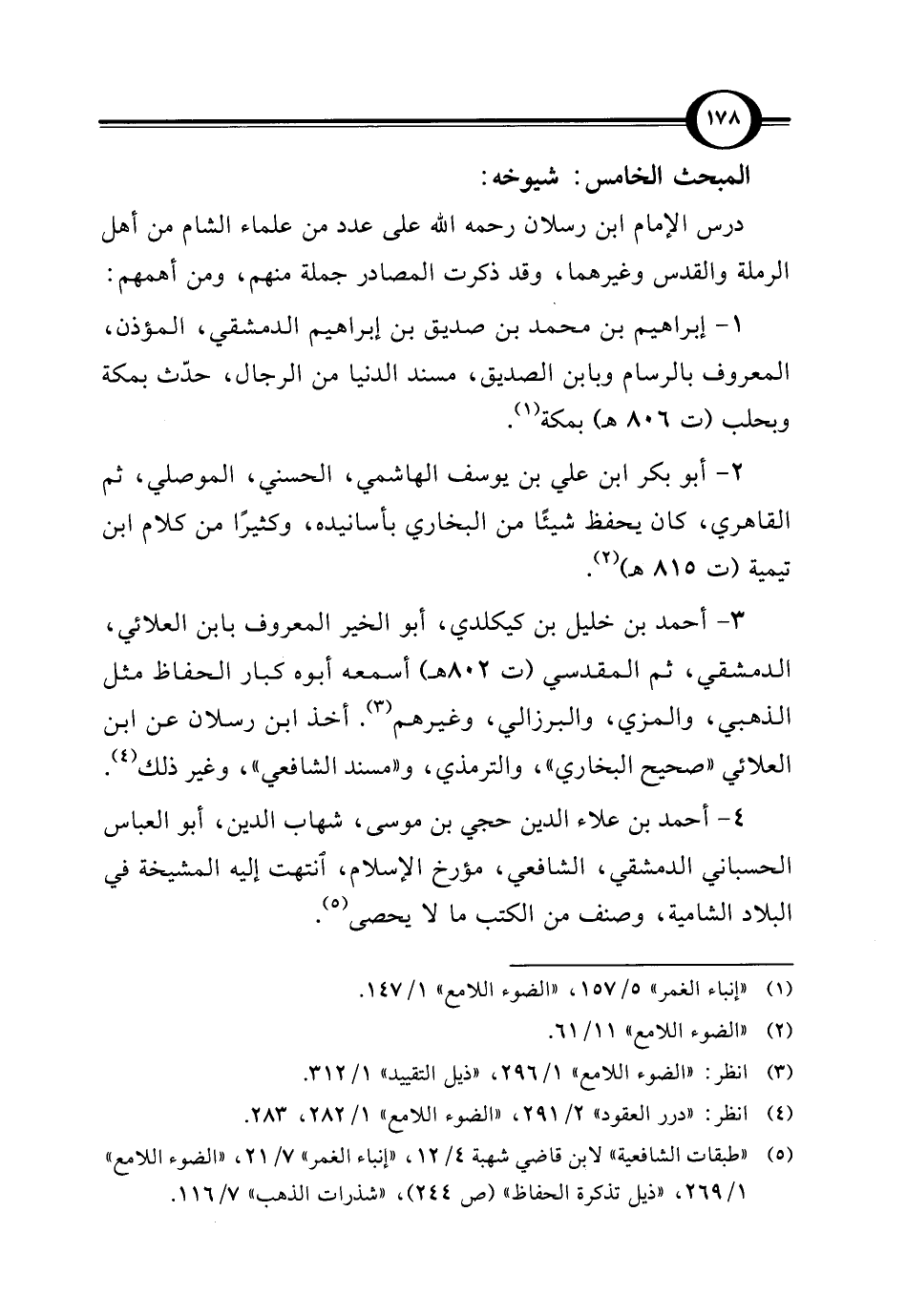 4 - أحمد بن علاء الدين حجي بن موسى، شهاب الدين، أبو العباس الحسباني الدمشقي، الشافعي، مؤرخ الإسلام، انتهت إليه المشيخة في البلاد الشامية، وصنف من الكتب ما لا يحصى (¬5).