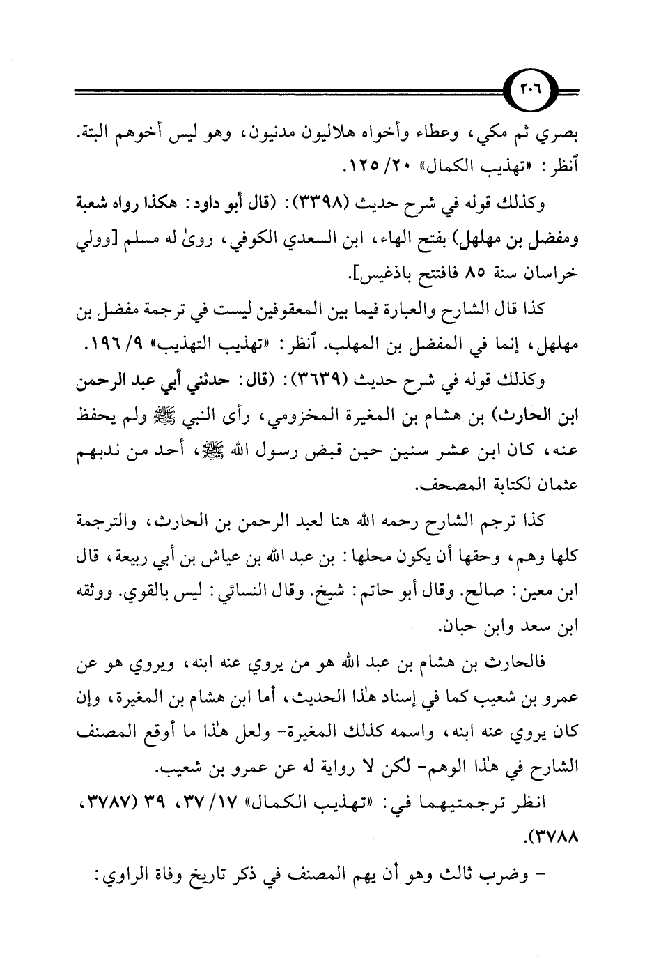 فالحارث بن هشام بن عبد الله هو من يروي عنه ابنه، ويروي هو عن عمرو بن شعيب كما في إسناد هذا الحديث، أما ابن هشام بن المغيرة، وإن كان يروي عنه ابنه، واسمه كذلك المغيرة -ولعل هذا ما أوقع المصنف الشارح في هذا الوهم- لكن لا رواية له عن عمرو بن شعيب.