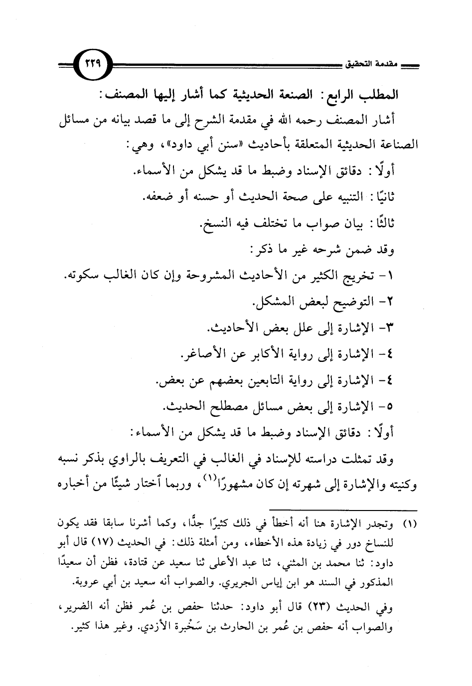 أشار المصنف رحمه الله في مقدمة الشرح إلى ما قصد بيانه من مسائل الصناعة الحديثية المتعلقة بأحاديث "سنن أبي داود"، وهي: