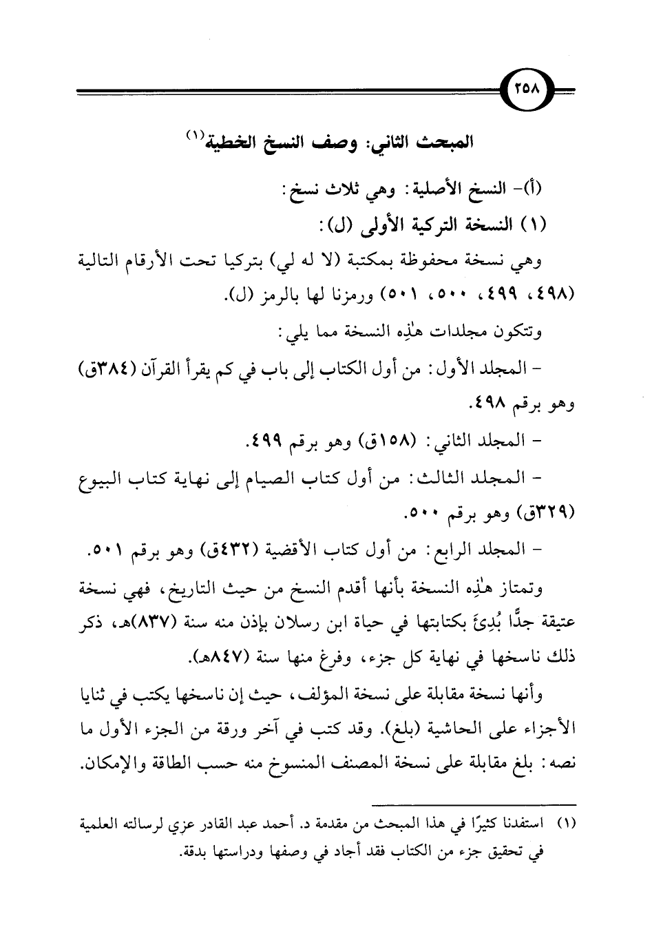المبحث الثاني: وصف النسخ الخطية (¬1)