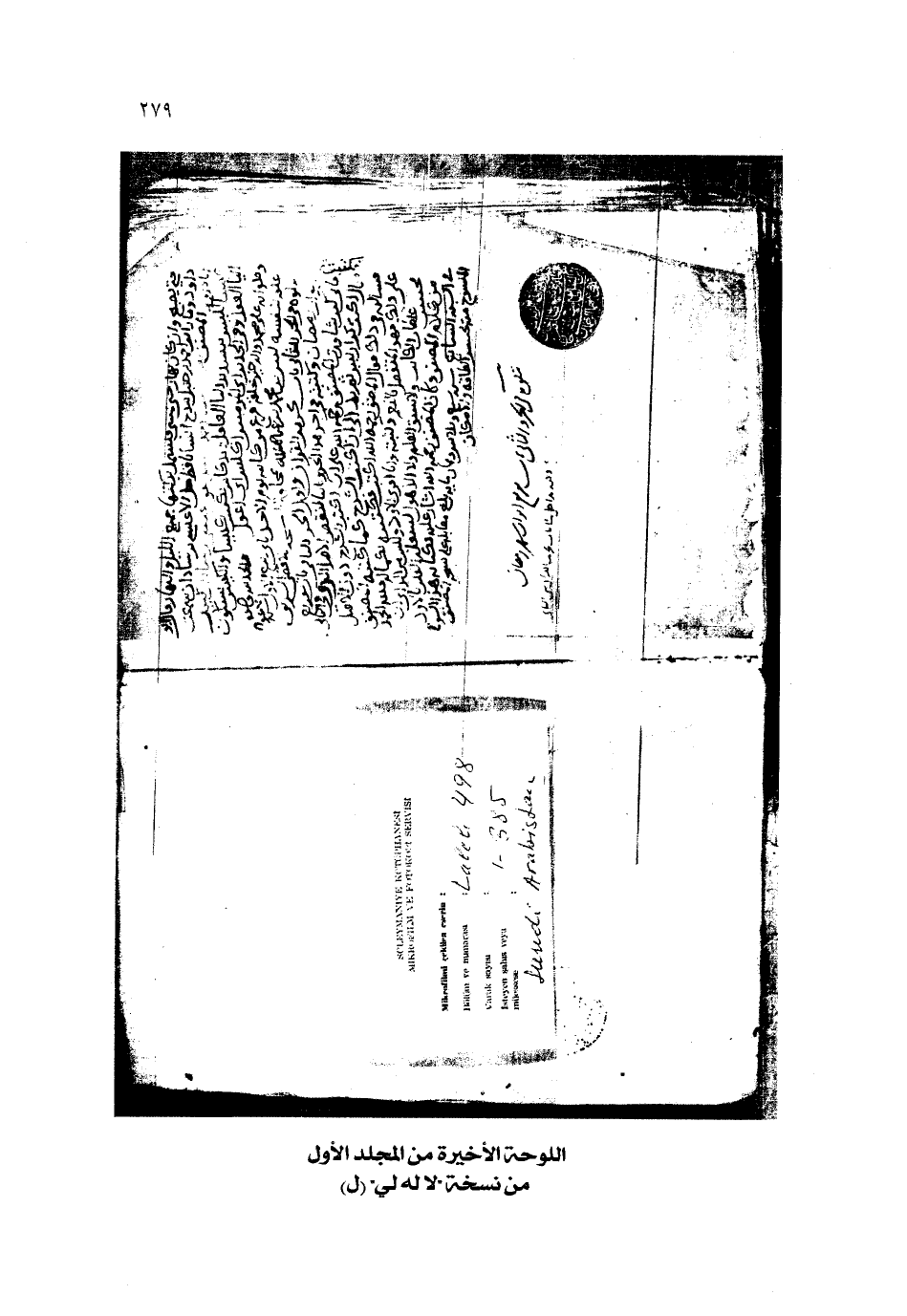 اللوحة الأخيرة من المجلد الأول من نسخة لا له لى- (ل)